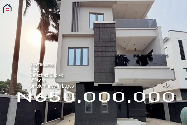 A 5 Bedroom Detached Duplex with BQ, sitting on 350sqm land Price: