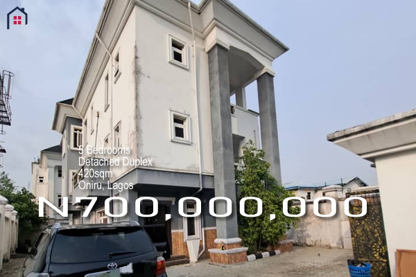 A 5 Bedroom Detached Duplex sitting on 420sqm land Price: N700m Title: